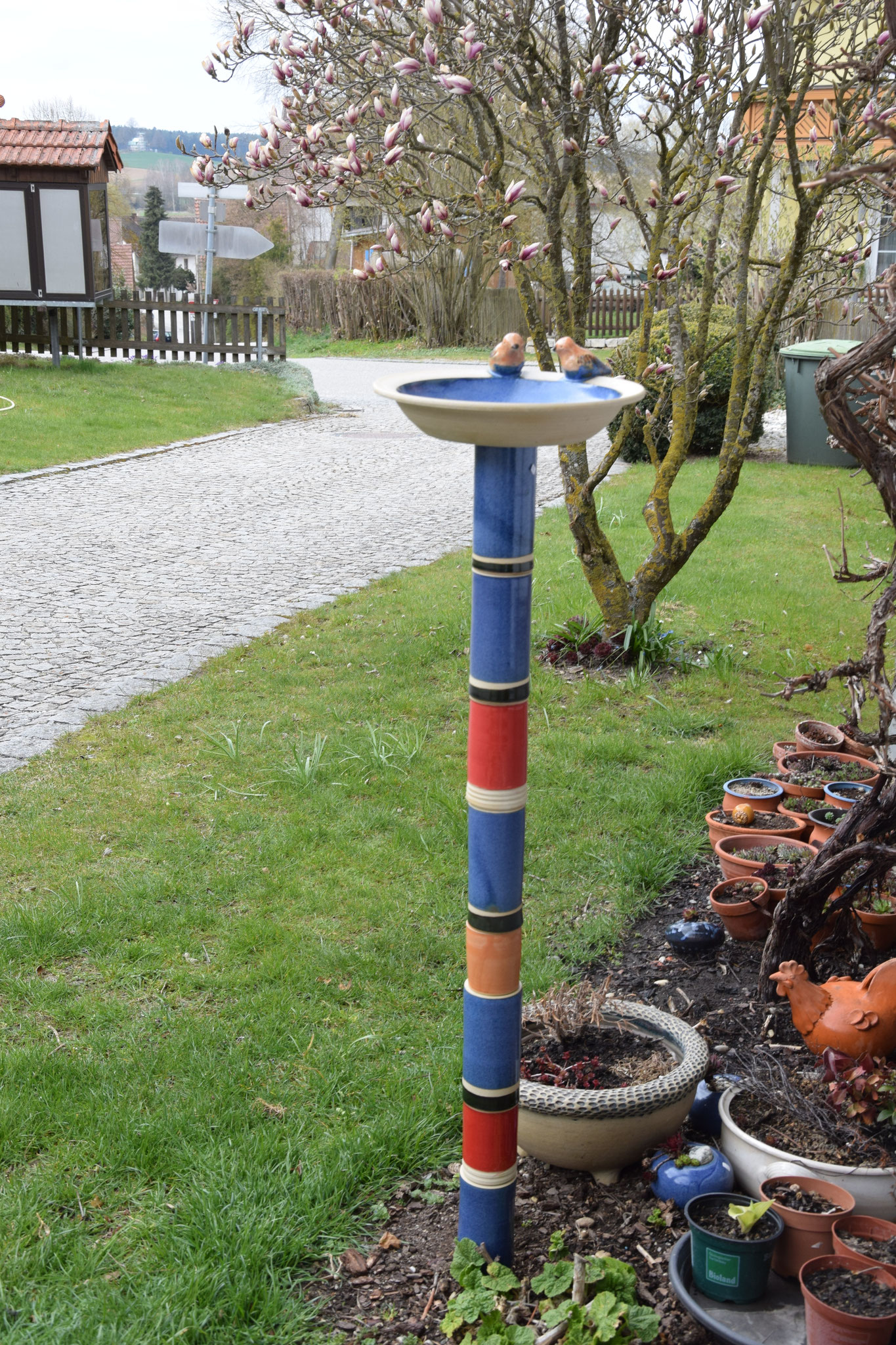 Objekte: Stelen, Gartenkugeln, Schwimmsteine, Ohrwurmhüte, Vogelhäuser, Brillenwürmer, Nistkästen, ...